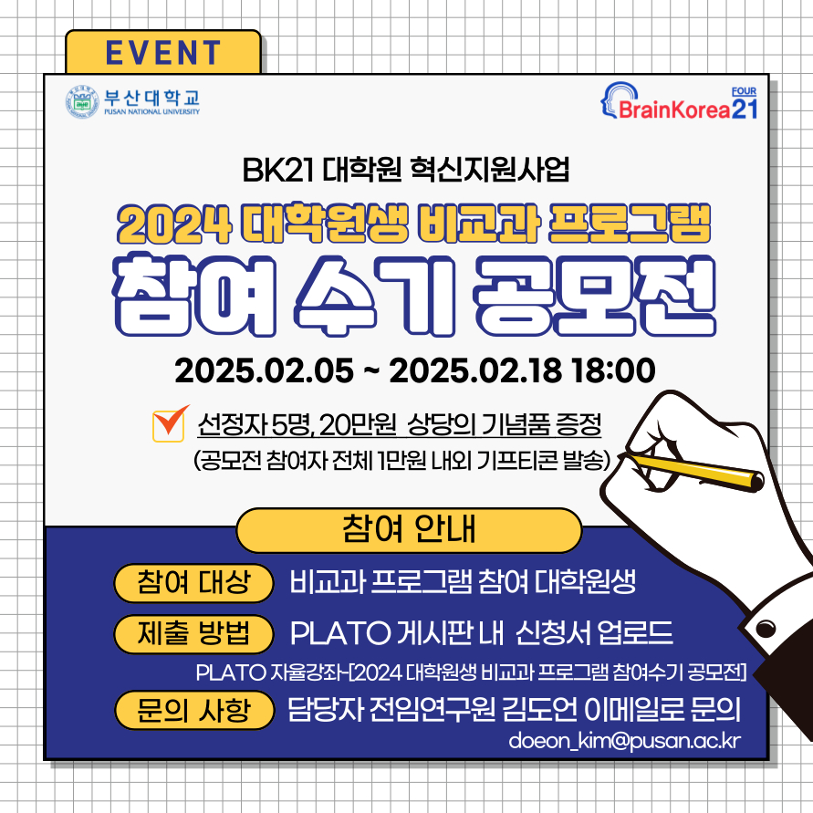 [대학원혁신실] 2024학년도 대학원생 비교과 프로그램(PNU-GCCP) 참여 수기 공모전 개최