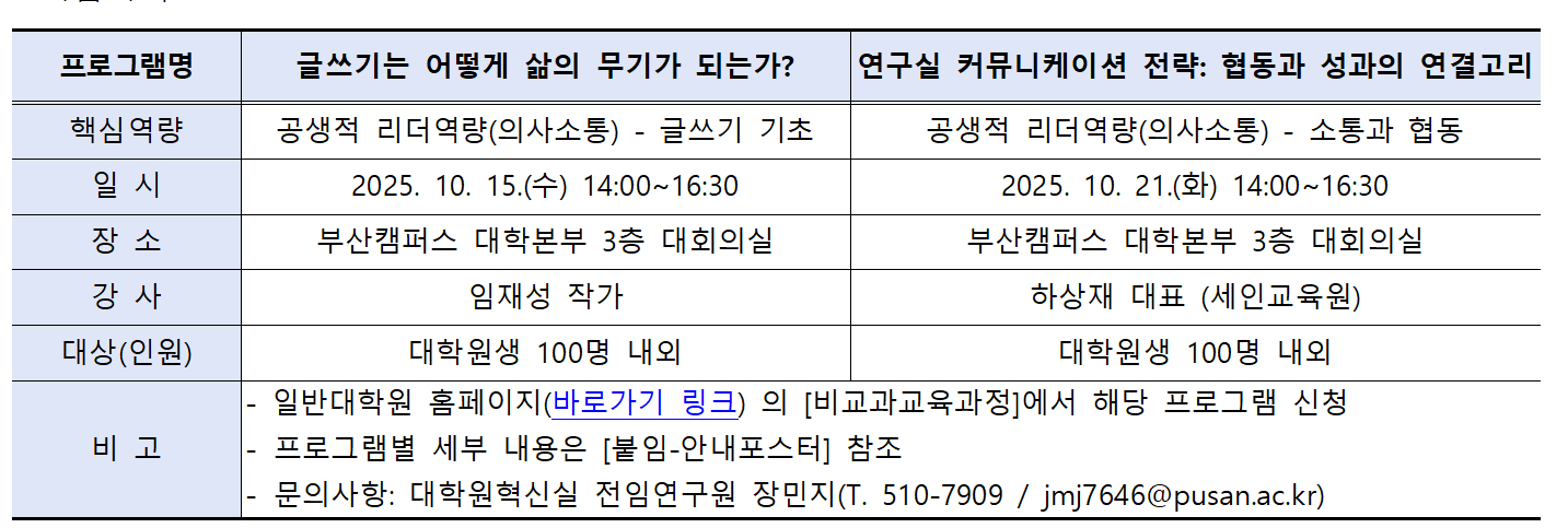 [대학원혁신] 2025학년도 10월 대학원 비교과 프로그램(PNU-GCCP)운영 안내