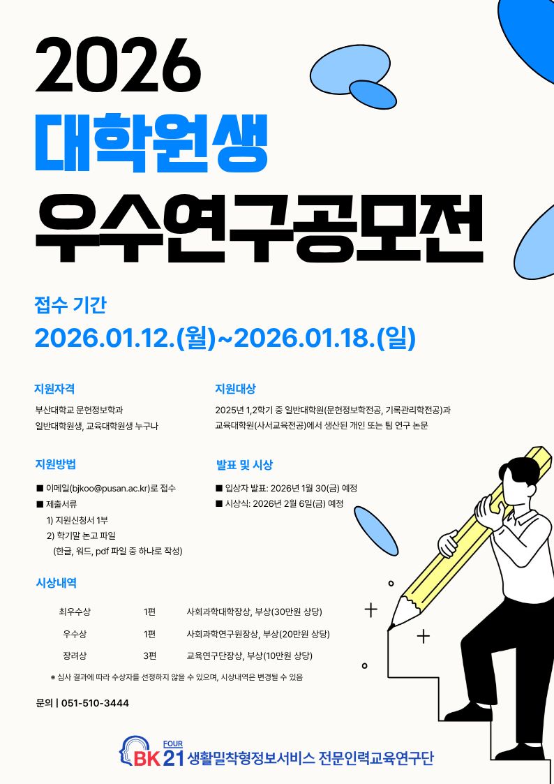 [부산대학교 문헌정보학과 대학원] 2026 대학원생 우수 연구 공모전