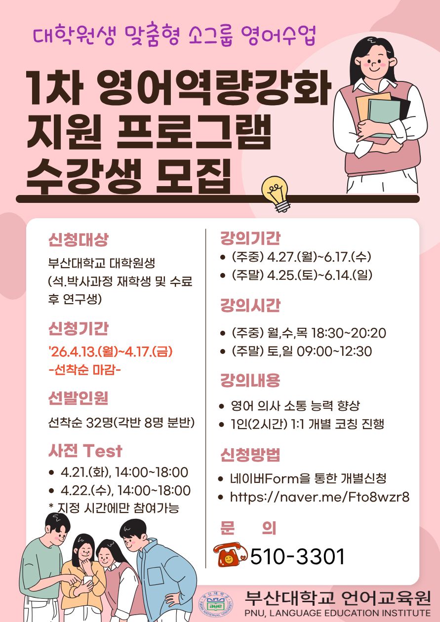 [언어교육원] 26-1차 BK21 참여 대학원생 영어 역량강화 지원 프로그램 안내