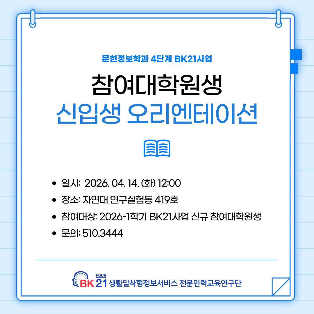 [공고] 2026-1학기 4단계 BK21사업 「생활밀착형정보서비스전문인력교육연구단」 참여대