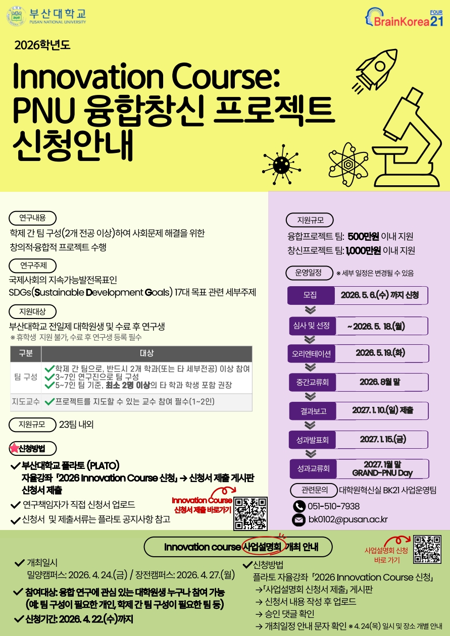 2026년도 Innovation Coures: PNU 융합창신 프로젝트 운영 안내