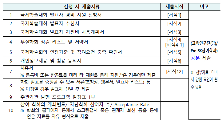 - BK21 FOUR 교육연구단(팀) 참여대학원생 중 학과(전공) 지도교수의 추천을 받은 자